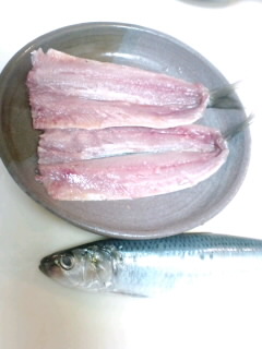 この日は新鮮なイワシがお安く売っていたので、思わずノープランで買ってきてしまいした…。お刺身にしてもOKというやつだったのでお刺身にしちゃおうかな~とも思ったのですが、前につくり置ききしていたバジルソースが冷蔵庫の中でちょっと変色してきてたので、なんとかこれを使おうと、思いついたのがこれでした。うちではパンの耳とかあまったパンを冷凍庫に保存しているので、それをミキサーで細かくしてパン粉をつくり、開いたアジちゃんにぺたぺたくっつけてみました。そして少し多めの油でパリッと焼いて~バジルソースをのっけてできあがり(トマトとブロッコリーとレモンを添えてあります)ソースとかパンとか常備してあると便利~自分で自分を褒めてあげたくなっちゃったあとはこの間覚えたばかりの桃と鶏肉のサラダ(09/07/26日記参照)を作ってお味噌汁作って完了~。相変わらずヘルシーな我が家の食卓でしたちなみにバジルソースですが、今回のはバジルとオリーブオイルとにんにく1片塩少々とパルメザンチーズを入れてミキサーしたものでした。あれば松の実をいれたりもしますがなくても美味しくできますね。オリーブオイルと塩とニンニクだけでも良いし、バジルが大量に手に入った時はつくってます。(今年は栽培は失敗しちゃったから買ってきたやつで…)