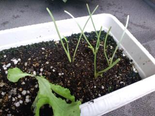 なんだか成長が悪いみたいです。もう種蒔きから一ヶ月もたってるんですけど、なんだか常にくったりしてる感じなんですよね…。はじめてだからよくわからないけど、こんなものなのかしら…。とりあえず引き続き頑張ってみよう~それに引き換え、小松菜ちゃんは全然心配いらず。今のところアブラムシもついてないし、わっさわっさ茂ってきました。さて、もうひとつこないだ心配していたアスパラちゃんですが、葉っぱがはえてきたようなのでカモミールちゃんのプランターに植え替えてみました。あいかわらず細いからまっすぐたてないですが…、なんとか成長しているようです☆あと、カモミールちゃんも少~しづつコツコツと成長してますみんながんばってるし、私も頑張ろうっと