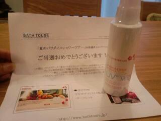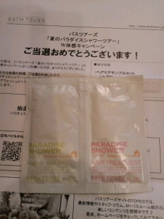 5月31日の日記で、シャンプー&トリートメントが当たった~と書かせていただきましたが、さらにそのWチャンスで、これが当たりました~☆ハイビスカス&フルーツのうるおいで、みずみずしく紫外線対策バスツアーズパラダイスシャワー UVボディミスト 100これからの季節に重宝しそうで嬉しい~♪プシュッとしてササッと伸ばして使えて良い匂いも長持ちする感じなので気持ちいいです。すごくサラサラではないかもですがベタベタすることはないし、普段のお出かけには手軽で良い感じです。バスツアーズの商品は他のシリーズもとっても良い匂いでとっても好きなのですが、このパラダイスシャワーシリーズは柑橘系の爽やかな香りでこれからの季節には特に気持ち良い香りですよオレンジベースの香りということですが私にはグレープフルーツの香りのように感じますシャンプーとトリートメントも先ず香りが良くてそれだけでも気持ちが良いのですが泡立ちと洗い心地がほんとに気持ち良いんです私は髪の毛が長いので、すぐからまっちゃうんですけどこちらのシャンプーだと指通り良くなめらかに洗えるのでシャンプーしてるときの引っかかるストレスもなくて香りも良いし、ほんとにリラックスできる感じです。リサージ バスツアーズパラダイスシャワーツアー(ヘアウォッシュ)ちょっとお高いかなとも思いますが、少しの量でも気持ちよく洗えるからけっこう長持ちします。シャンプーとかトリートメントは、他にも気に入っているものもあるし季節とか気分とか懐具合にあわせてころころ変えて使っていますが、こちらもそのローテーションの中のひとつに仲間入りしましたもともとバスツアーズの商品に出会ったのは何年か前の日航かどこかの宿泊の特典だったんですが、その時は確かトマトとバジルの香りとかもあって恐る恐る使ってみたらすご~く良い匂いで、さらに洗い心地もほんとに良かったので帰ってきてからネットで調べてメルマガにも登録しちゃたという次第です。皆様も、たまに変えてみたいな~と思ったらぜひ使ってみて下さい。お風呂の中が良い匂いに包まれて楽しいシャンプータイムになりますよ