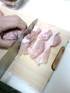 このブログによくコメントも書いてくれている まちゃさん が出張☆お料理教室を開きに来てくれましたこのレシピはまちゃさんがたまに通っているお料理教室のレシピとのことですが、食材を買いに寄ってくれたスーパーに主役と思われる材料の水ナスが無かったらしく…私にメールをくれて、「水ナスが無いんだけど…代わりにみずみずしいものってことで桃はどうかしら~」…と書いてあったので、私はてっきり料理はあきらめて桃でも食べてお茶しようってことだと思ってたんですけど…な、な~んと水ナスを桃で代用するということだったんですーかなり サプラーーイズでしたが、そういえば前に友達に連れて行ってもらった美味しい野菜料理のお店で、桃がサラダに入ってて超美味しかったよね~という話になり、二人で盛り上がって作りはじめたのでした。レシピはまちゃさんもうろ覚えっぽくて適当でしたが私の記憶力も相当ヤバイので多分あってないです…。(間違っている時はまちゃさん訂正お願いしまーす)●まず鶏肉を食べやすい大きさに切ります。(写真いらないって?でもこれはまちゃさんの手なので一応UP)●カットした鶏肉はめんつゆ適量を入れて漬けておきます。(たまたま前日つくっためんつゆの残りがあったのでそれを使いましたが、市販のものでももちろん可)●白桃も皮をむいてひとくち大にカット(これも写真いらない?)●プチトマトも半分にカットして白桃と合わせてボウルに入れて、オリーブオイルを適量入れて、塩、コショウも適量ふります。●そして青じそも刻んで入れて全体的によく和えます。●めんつゆに漬けてた鶏肉を蒸し焼きにします。(両面を焼いたら水を投入して蓋をして弱火に。)●鶏肉に火が通ったら火を止めて、少し荒熱をとって先ほどの桃とトマトと合わせて和えたら出来上がり。(冷蔵庫ですこし冷やしてもよいですが冷やしすぎると鶏肉の油がかたまってしまいますので注意)はじめは、桃がどんな味になるのかちょっと心配でしたが、すぐ出来て彩りもキレイでオシャレな感じだし、桃の甘さも良い感じで、ほんのりめんつゆ味の鶏肉とトマトもシソもマッチしてとっても美味しかったです(バジルもあったからちょっとのっけてみたんですけど、バジルだと味がイマイチ合わないので青じそが絶対おススメ!)水ナスでもぜひ作ってみたいけど、桃も一緒に入ってても良いかも。(ナスと一緒じゃ歯ざわりが合わないかな…)あ、ちなみに水ナスの場合も生でそのまま使うそうです。ただ食べやすい大きさに切っただけでいいとのこと。(まちゃさん>あく抜きしたりしなくていいって言ってたよね?)…と、いうわけで非常に簡単に出来るし、キレイにできるしちょっとしたおもてなし料理の前菜におススメです。まちゃさん、ありがとうございました~またいいネタあったらお願いします~