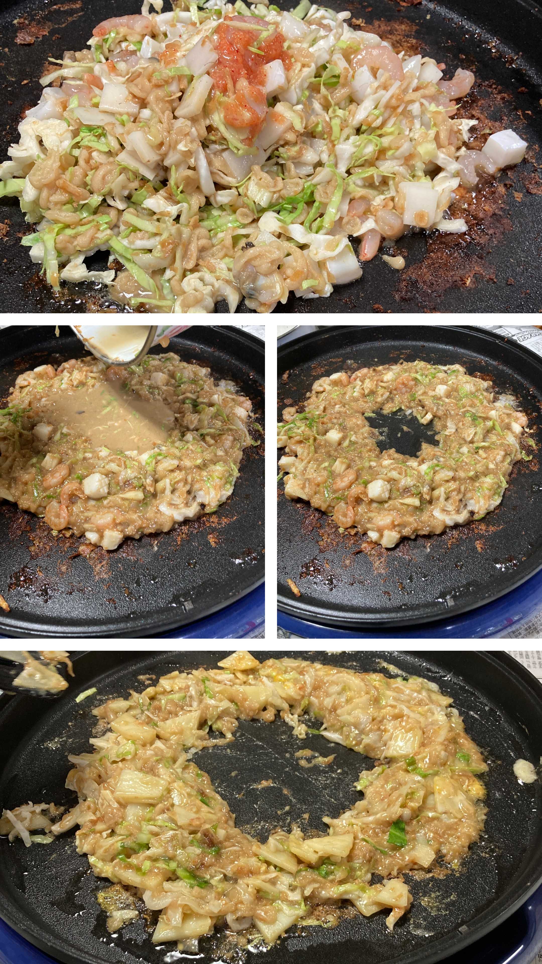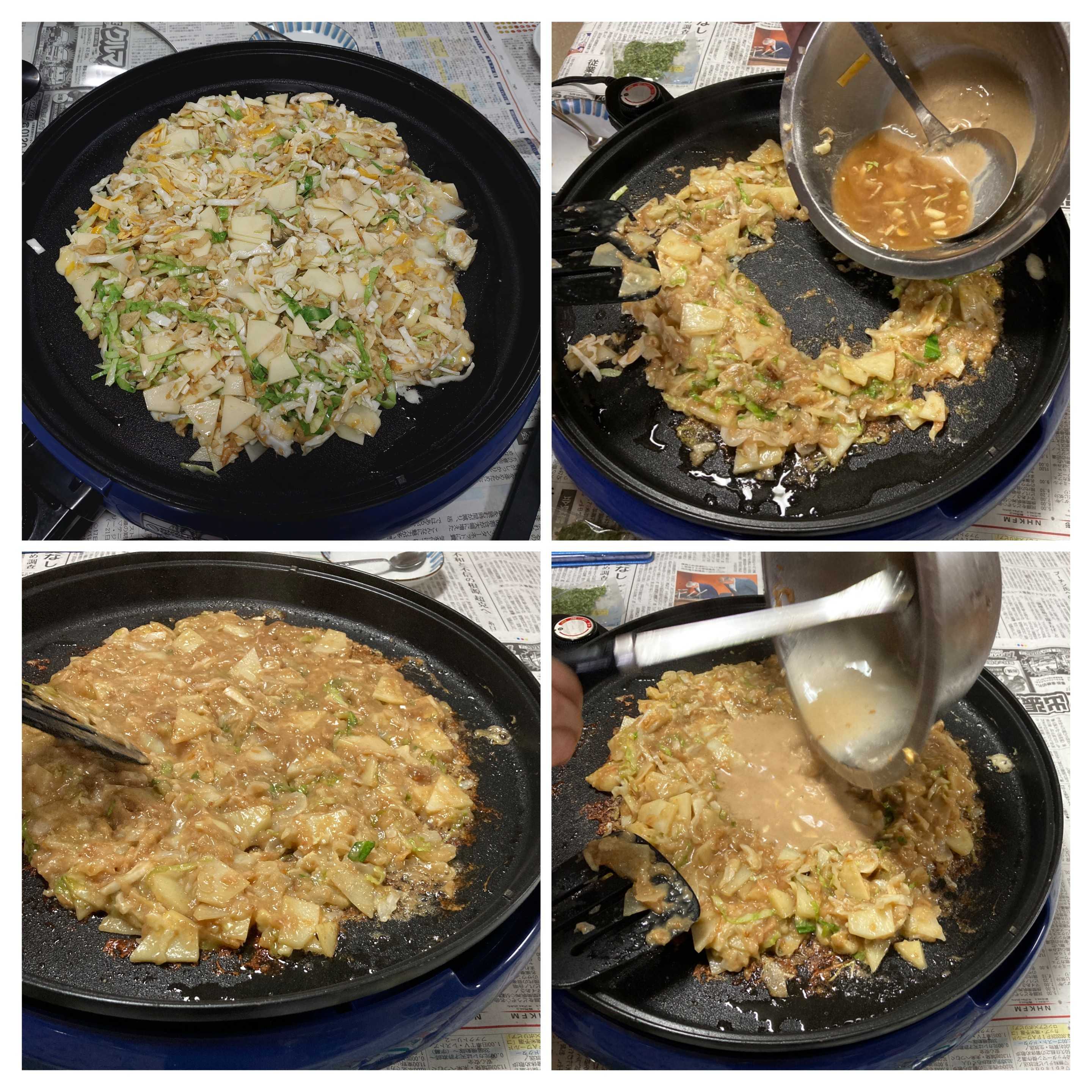 ●全部混ぜたら、具だけ炒めるようにプレートで焼いて