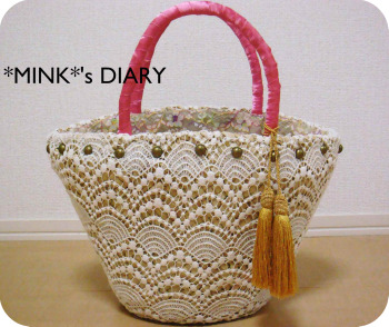☆。+.゚Hello~(・ω・。)●●●)))゚.+。☆訪問・コメントありがとうございます+。*今日は暑いと思って半そで着てきたら、会社はもうクーラー付けてるから、ちょっと寒い。。。やる気ないけど、今週も頑張ろう♪+。*☆*:;;;;;;:*☆*:;;;;;;:*☆*:;;;;;:*☆*:;;;;;:*☆*:;;;;;:*☆*:;;;;☆*:;;;;;:*☆butterfly storeさんで予約してたajewのカゴBagが、やっと届きました(●´艸`●)おひろめさせてくださいもう…可愛すぎて、テンション一気に上がった~ッ♪!!持ち手のピンクが可愛いし、レースにスタッズ、タッセルまで…好きなテイストが盛りだくさんな、欲張りBagです(●´艸`●) 内側は、レースで巾着が作られているので、中は見えないようになっています♪+。*このレースが、レインボーカラーの花柄でほんっとに可愛い!!HAPPYカラーです♪+。*大きさもちょうどいいくらいだし、いろいろ装飾が施されているのに、軽くて使いやすそう☆!!買ってよかったです(●´艸`●)使いまくるぞ~!!☆MINK☆が買ったタイプはもう売り切れですが…他のカゴBagは、楽天さんにも入荷してます♪+。* 左のモロッコバスケット、いろんな雑誌に載ってて可愛かったな~♪+。* みんなのところで見た、FleaStoreさんのカゴBagも可愛いajewのを買ってなかったら、どれか予約してると思います☆もう1つくらい欲しいとこだけど、ここはぐっとガマンガマン…Oo。(●´Д`●)y-~~~刺繍がカラフルで可愛い♪これ持って、ルンルンお散歩行きたいわッ(●´艸`●) 大人っぽいカゴBagもいいな~☆ ゆーみぃchanの影響で気になってきたカギ編みトップス…。。。THE・単純だわ(笑☆☆。+.゚(((●●●(。・ω・)ノ Bye~゚.+。☆