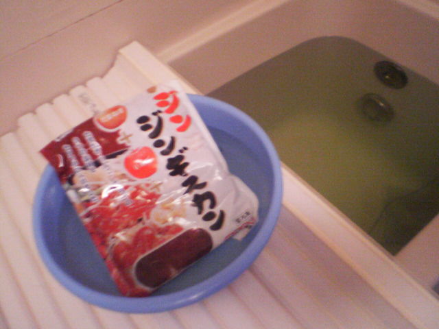 冷凍味付ジンギスカンを買ってきて「今すぐ食べたい」ということで、レンジで解凍するのもアレなので(?)、