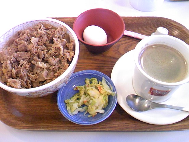 あの「わさび山かけ牛丼にいろいろつけすぎ」なのを食べたあと足りなくて、うっかりもう一つ頼む。