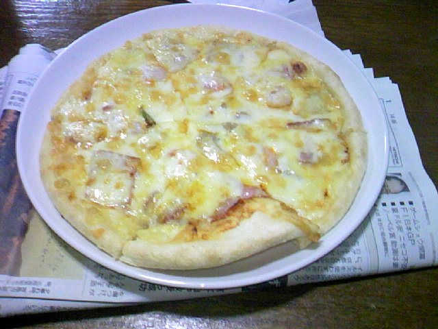 これは元々安いので、いかにもテンフォーらしい、具が控えめなシンプルピザ。