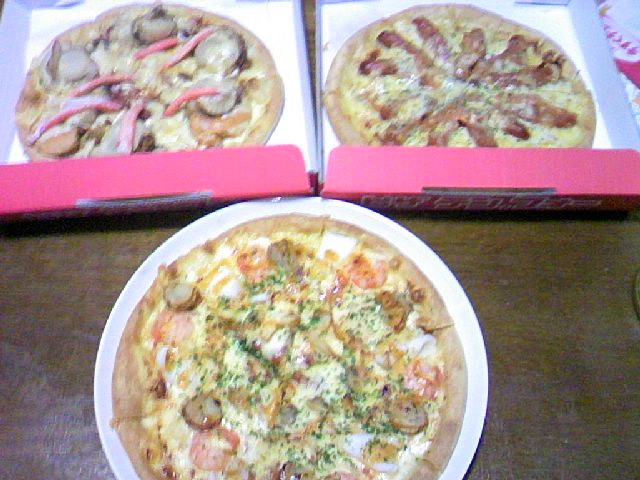 ふつーピザのデリバリーを頼むと、下手すると寿司の出前より高くついたりしますが、これはMサイズ3枚で約5000円。