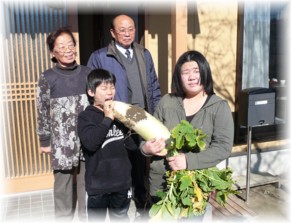 お正月も2日...嫁さん方の親戚が集合♪♪90歳を迎える「ひーバーバ」の家に集まりみんなで笑顔を交わしあいました (*^▽^*)家の前の畑では、立派な”大根”が育っていて子ども等は、大喜びで『収穫』に...何とも立派な大根の姿に、思わず記念撮影 (∩。∩;)ゞ家に持ち帰って、重さを測ってみたらナント6kg以上も有りました☆彡さて、お味の方はどうでしょうネッ!?ありがたくいただこうと思います (*^^*)☆---☆---☆---☆---☆さぁ!!正月2日といえば『書初め』 (o^∇^o)ノ今年も、昨年・一昨年に続き子ども等の宿題と一緒に、一筆したためました♪♪相変わらず、上手くは書けませんが気持ちはシッカリとこもっているハズ!!元日の”決意”を「書」にも表すことでより強く意識付けされ、気持ちもスッキリ♪♪真ん中の『と』の字には「and」と「with」の両方の意味を持たせたつもりデス V(=^‥^=)v次は、やりかけのまま眠っていた『宝地図』を完成させこの書初めと並べて飾っておくことで潜在意識をフル活用しながら、前へと進み続けたいと思います!!自分と向き合う、イイ時間を過ごさせてもらいました♪♪ありがとうございます☆★☆彡