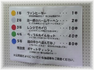 今日は地区の『公民館祭り』(o^∇^o)ノ毎年、とっても楽しいイベントが山盛りでハルもケンも、とっても楽しみにしています♪♪今日も朝の開始時間に合わせてみんなで出掛けて行きました V(=^‥^=)vその公民館祭りを前に、住民それぞれの家には回覧板にて”抽選券”の付いたチラシが配られ1家族1回の福引が楽しめます☆彡モチロン我が家も”抽選券”を握り締めて会場へ...抽選に臨むのは、我が家の「ラッキー・ガール」ハル♪♪ちなみに、今回の当選賞品はこんな感じ (*^^*)ハルは、5等の賞品の中に、何やら欲しいモノを見つけ「アレがイイナァ~♪♪」って感じで、ガラガラ~ッ ヽ(*^^*)ノ『...○ コロン♪』(白玉の出た音)カラン、カラン、カラ~ン♪ 大当たりぃ~ (o^∇^o)ノ見事、2等の「治一郎のバウムクーヘン」が当選☆彡みんなビックリ&大喜び♪♪イヤァ~!!今年はイイ年になりそうデス ( ̄▽ ̄)V☆---☆---☆---☆---☆お昼過ぎまで、タップリと遊んで帰ったあと公民館で、お昼も済ませてノンビリだったので「バウムクーヘン」にも刺激されてパパは”お菓子作り欲”がムラムラ...(o ̄ー ̄o)先日から買い集めているレシピ集『パティシエと作るケーキ&デザート』の中から新作に挑戦デス (* ̄0 ̄)/選んだのは『フリュイ・フルール』♪♪(ロールケーキです...)本当は、生フルーツを巻き込み生フルーツで「花(フルール)」を飾り付けるのデスがその辺は、予算の都合上、桃缶と冷凍ブルーベリーで割愛 (;^ω^Aチョット色合いが寂しくもありますが花壇のミントに活躍してもらって結構イイ感じに出来上がりました o(*^▽^*)oロールケーキも、チョット手をかけてやればとってもステキになるモンですネッ♪♪親切なレシピのおかげでまた「新天地」を切り開けた気分デス (*^.^*)☆---☆---☆---☆---☆笑顔にあふれた楽しいイベントにワクワク楽しいケーキ作り...♪♪とっても充実した1日を過ごさせてもらいました (*^▽^*)ありがとうございます☆★☆彡☆★☆★☆★☆★☆★☆★☆★☆★☆★☆★☆★ ワクワクと笑顔にあふれた「子育て」を♪♪ 『ハートフル・セッション』で あなたもキラキラ輝くママ・パパに☆彡☆★☆★☆★☆★☆★☆★☆★☆★☆★☆★☆★