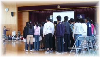 先週の『素晴らしい体験』に続き今日もまた、養護学校へお邪魔しました (o^∇^o)ノ前回に引き続き、コミュニケーションを重視した楽しいレクリエーションを...♪♪今回が初参加となる生徒も5人ほど居たので前回と同じ動きを確認しながら少しずつレベルアップして行きました!!「話を聴くこと」「共同作業」「リーダーシップ」等々色んな要素を盛り込んでみましたが生徒達も、先生方も、とっても楽しそうに取り組んでくれてイイ雰囲気が感じられました (*^▽^*)メインイベントとして用意したのは前回も盛り上がった『フラフープ』のワークを手製の”巨大フラフープ”にバージョンアップしたモノ♪♪直径5mにもなる”巨大フラフープ”を参加者全員が支え、みんなが1つになっての共同作業 (* ̄0 ̄)/そこには、学年を超え、教師・生徒の関係も超えた素晴らしい『一体感』がみなぎっていました☆彡☆---☆---☆---☆---☆素晴らしい感性を持った生徒達...温かな想いがイッパイの先生方...そんなステキな輪の中に居られたことに心から感謝します♪♪また一緒に活動できたらイイなっ (*^.^*)ありがとうございます☆★☆彡