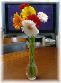 今日もまた、暖かな1日 (*^▽^*)桜の開花も、かなり進んで来ました...もう7分咲きくらいかナァ~☆彡夕方、ジージ・バーバが寄ってくれて叔母ちゃんからの、ハルへの卒業祝いを届けてくれました♪♪それと一緒に、花や野菜も山盛り ヽ(*^^*)ノ白菜、ブロッコリーに新タマネギ、レモンまで!!お花は、桃の切り枝とカラフルなガーベラ☆彡部屋の中も、冷蔵庫の中も”春の贈りモノ”でイッパイに...ヾ(@~▽~@)ノそして何より、ハルの卒業アルバムを開き愛おしそうに目を細めるバーバの笑顔が我が家に、幸せの風をイッパイ吹き込んでくれました♪♪☆---☆---☆---☆---☆春っぽさを感じさせてくれたモノが、もう1つ (*^^*)『パティシエと作るケーキ&デザート』を見ながらハルがチャレンジし始めた”マジパン”のデコレーション☆彡赤・黄・緑の3色のマジパンを作り楽しそうに細工していました♪♪食べずに残してくれた、ニコニコ笑顔のお花 (*^.^*)華やかなガーベラに、負けず劣らずとっても春(ハル)らしく、心を和ませてくれました♪♪☆---☆---☆---☆---☆柔らかく、ユッタリとした時間が流れるこの季節...ジックリと”自分”を振り返るにもピッタリですネッ☆彡明日は『離任式』!!笑顔に感謝の気持ちを込めて転任される先生方を送り出して来ます (o^∇^o)ノありがとうございます☆★☆彡