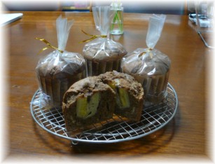 東海地方は、これから”大雨”だとか...w( ̄▽ ̄;)w今月は、何だかとっても雨が多いような!?そんな中、ハルはカッパを着ての自転車通学とっても頑張ってます (o^∇^o)ノこれから気温も上がって、カッパは蒸れるだろうナァ~★さて、今日も『疲れたぁ~!!』と帰って来たハルですが少し休むと、おもむろに「パティシエと作るケーキ&デザート」を開きしばらくペラペラとめくった後、『よし!マフィン作るっ♪♪」(* ̄0 ̄)/テキパキと準備を始めました☆彡パパはその後、塾のお仕事が有ったので計量している様子しか見ていなかったのデスが塾から帰ってみると、部屋には何ともイイ香り...( ̄●● ̄)何とも大胆に、バナナがズボッと刺さった美味しそうなマフィンが焼き上がってましたぁ~♪♪さっそく少し食べさせてもらいましたがコレがまた『まいうぅ~っ♪♪』(*^。^*)本人も満足の行く出来だったようで「コレは友達にあげるから食べちゃダメだよ!!」と丁寧にラッピングも...☆彡本当に最近は、パパが全く手を出さなくても道具・材料の準備からオーブンでの焼き上げまで自分でレシピを見ながら、ドンドン出来ちゃう!!スゴイ上達ぶりだナァ~ ヽ(*'0'*)ツこのところは、ハルが作って食べさせてくれたモノを美味しいからパパも作ってみる!!そんな感じになっちゃってます (∩。∩;)ゞ私の講座で提供している手作りお菓子もハルのおかげで、メニュー選びが助かってます♪♪今度の講座でのお菓子は、今回のモノをひと回り小さくした”ミニマフィン”で決まりかナッ (*^^*)親子で共通の趣味を持てるって、幸せ~~ (*´ェ`*)ありがとうございます☆★☆彡