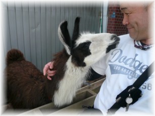 今日は楽しいイベントにお邪魔しました (o^∇^o)ノアメリカ式学童保育『ハッピーキッズ』をオープンした「創業塾」仲間の”池ちゃん”のところデス♪♪先着50名には、コチラも「創業塾」仲間の”まるしょうパン”の美味しいパンがいただけるということで張り切って向かうと、もう『ハッピーキッズ』の前は親子連れでごった返し ヽ(*'0'*)ツそれでも、ちゃんと美味しい「あんパン」をいただきました♪♪そして、入り口前の駐車場には自然体験を提供する『NLfarm』さんが連れて来たカワイイ”ラマ”を筆頭に、動物達がイッパイ☆彡とっても人懐っこいラマの「憲尾(のりお)」クンとバッチリ”ツーショット”を取っちゃいました ( ̄▽ ̄)V☆---☆---☆---☆---☆ほどなく建物の中では、”池ちゃん”のあいさつを皮切りにイベントがスタート♪♪ローカルヒーロー軍団『BAT・ZO』の皆さんが歌やギターの演奏を披露して下さりメインには、子ども達も大興奮の『忍者ハットラくん』の登場!!さすが”空手家”の方々というだけあり迫力満点の「本物」のアクションでした (* ̄0 ̄)/部屋の隅の金属ラックに、「ガシャーン!」と足をぶつけていたのはかなり痛かったんじゃないかと思いますが...☆ ̄(>。☆)☆---☆---☆---☆---☆中での盛り上がりもさることながら駐車場での動物達とのふれあいは子ども達が入れ替わり立ち代りしながらズーッと笑顔がイッパイ♪♪その様子を眺める大人たちも、当然笑顔・笑顔...(*^^*)ヤッパリ、動物達のチカラってスゴイなぁ~☆彡私も、そんな様子を眺めながらニッコニコ♪♪ほっぺたが痛くなっちゃうくらいでした (*^▽^*)ウチの子ども等も、一緒に連れて来たかったナァ~!!(それぞれに友達が遊びに来てくれて、そちらが優先でした (∩。∩;)ゞ )ありがとうございます☆★☆彡