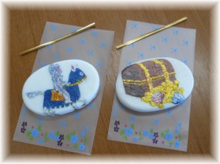今日の雨はスゴかったぁ~ w( ̄▽ ̄;)w沼津での会合のため、早朝に家を出発!!日本坂のトンネルに入るまでは、普通の雨...ところが「トンネルを抜けると、そこは滝つぼだった!!」Σ(゜◇゜;)本当に滝の裏側から出たかのように、前が見えない!!!50mも離れると、前の車のテールランプがかすかに光る程度...時折、対向車線のトラックが上げる水しぶきでこれまた本当に”滝”が降りかかる (*ノェノ)それでも、集合時間が有るので、休んでいる訳にも行かず目を皿のように見開きながら、何とか運転を続けました (◎-◎)いやぁ~!!無事に到着してよかったぁ~♪♪☆---☆---☆---☆---☆スッカリ雨の上がった午後...車を飛ばして浜松へと戻り思いっ切り遅刻して、「いっぽ」さんのイベントへ滑り込み!!今日は「ドラゴンプリンセス」さんを講師に招いての『デコパージュ』なるものを体験 (*^▽^*)紙ナプキンの好きな絵柄を切り抜き専用のノリを塗って、石鹸の表面に貼り付け!!乾かしてから何重かに専用のツヤ出しを塗り最後にラメ入りのノリでデコレーション☆彡細かい柄の切り抜きは、チョット手間がかかりましたが作業自体は、とっても簡単 ( ̄▽ ̄)V超遅刻の私も、無事に仕上げることが出来ました♪♪ハルも誘っていたのだけれどちょうど同じ時間に部活が入ってしまい断念...次の機会には、一緒に楽しませてもらいたいナァ~ (*^^*)ステキな工芸に出会わせていただきました♪♪ありがとうございます☆★☆彡