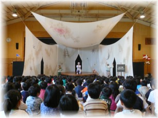 今日は、ケンの通う小学校で『鑑賞教室』が有りました!!今回鑑賞させていただくのは「劇団たんぽぽ」の演じる『100万回生きたねこ』でした☆彡ありがたいことに、保護者も希望すれば有料で一緒に鑑賞させていただけます (*^▽^*)そして、モチロン私も...♪♪体育館には大きな幕が広げられ真ん中には、大きな円形の舞台...使い慣れた体育館が、まったく違った空間に変わっています ヽ(*'0'*)ツそして、よく通る劇団員の皆さんの声で更にその”非日常感”は急上昇!!!絵本では有名な『100万回生きたねこ』デスが演劇に仕立てられると、また大きく違った感動が...(ノ◇≦。)今回、私の心に一番響いたのは「白猫」役の方の、何とも絶妙な”間”をとっての『そう』のセリフ...☆彡まさに「コミュニケーション」の奥義を見た感じ!!!こんな『そう』が言える人に、私もなりたい...(* ̄0 ̄)/ありがとうございます☆★☆彡