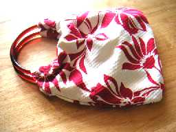 これ私が作ったバッグなんですよ。浴衣にでも服にもあうけど楽天てこういうの売る人いないんですね。ヤフーには多いけどそれでまた新しいの作ろうと思って生地を買いましたぶが厚い生地は値段が結構するんですけどね。薄いのは安物です。