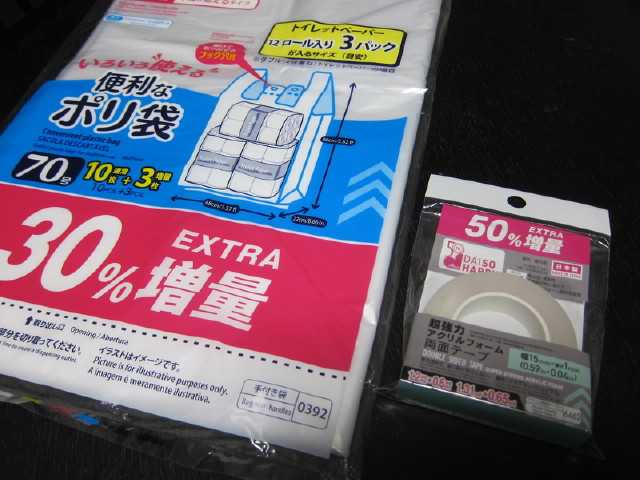 前々から気になっていた魔法のテープアクリル素材の強力な両面テープで凹凸がある場所や金属、ガラスどこにでも使用できる優れモノAmazonで買おうと思っていたがダイソーにて似たようなテープを発見しかも50%増量との事なので購入してみたついでに庭で引っこ抜いた雑草を捨てるための大容量ゴミ袋も購入こっちも30%(3枚)増量中だw本家のテープとは異なり洗って繰り返しは使えないがなんたって110円なので文句は言えない高評価レビュー4.6 魔法のテープ強力両面テープはがせる魔法のテープ正規品 (幅3cm 長さ1M)お試し返品可送料無料niaは玄関に座っているどうしたnia?夫はまだ帰ってこないぜよ★今日の晩ごはんオムライスハンバーグマックチキンナゲットサラダ思いっきしお子様メニュー(笑)ワンプレートにしてお子様ランチ風にしようかなw