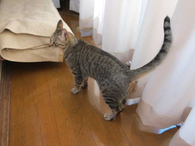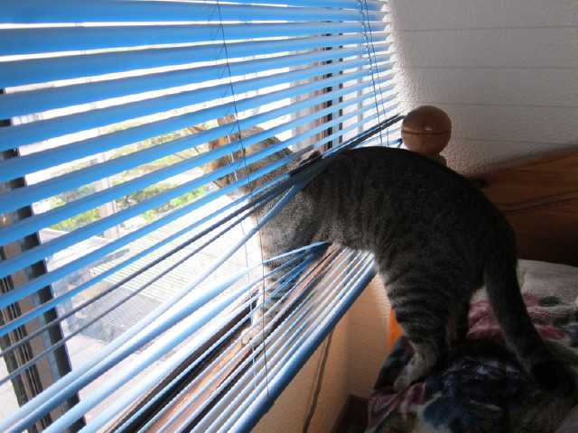 義母宅(夫の実家)の部屋にはブラインドカーテンがあります外が見たいけれどカーテンしか知らないniaは閉じているブラインドの隙間に頭をグリグリ押し込んで強行突破(笑)窮屈そうだけど満足気でした
