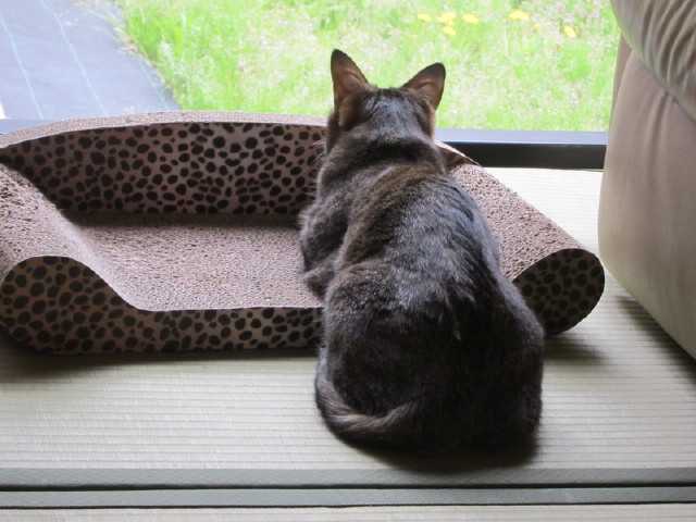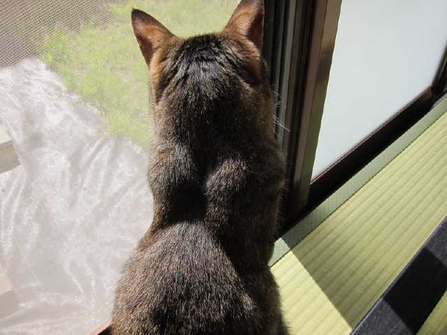 niaが一点を凝視し集中しているので何かと思い外を見てみるとカラスでした狩りたくてうずうずしているnianiaは毎日縁側から外を眺めて楽しんでいます