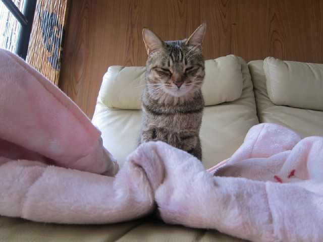 珍しく夫の近くでくつろぐnia眠いのにゃたまには夫のそばで寝るにゃそうか。そうかたまにはいいよねしかしよく見りゃヨギボーへたれてきたなぺったんこじゃねぇかwしばらくこの位置で過ごしていたが夫がモソモソと動くので安眠できないらしくどこかへ去っていったnianiaがいなくなった事を気にした夫が探しに行くと私の寝室で寝ていたとの事。やっぱりいつもの場所がいいですにゃんさて今日は少し忙しいあちこち行かねばならぬniaは留守番よろしくなそれでは行ってくるでござる