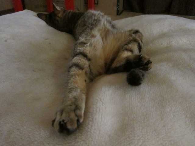 なんちゅう寝相(笑)ぐっすりと眠りこけているらしくカメラを取りに私が部屋から出ても起きる気配なし愛猫がこんな安心しきった無防備な姿で寝ていると飼い主としては嬉しいですな君のおかげで笑顔になれます幸せで平和な日曜日をありがとう