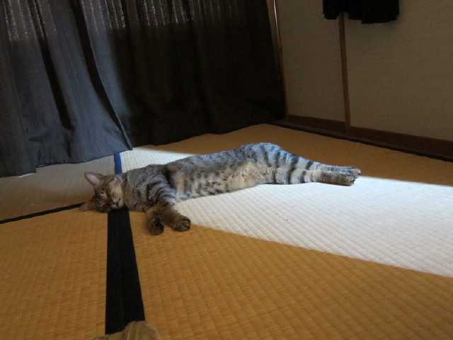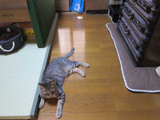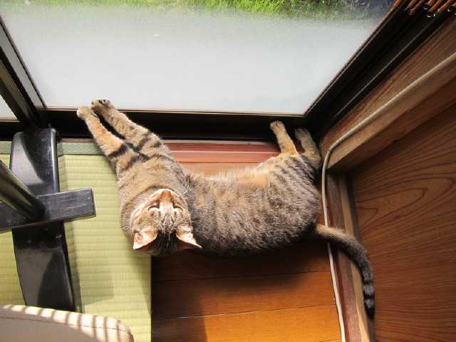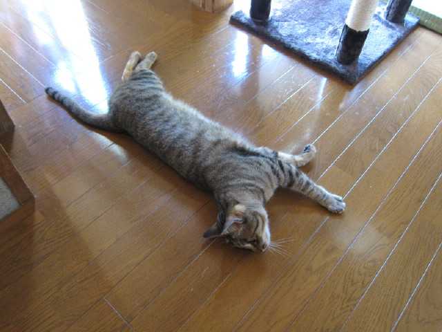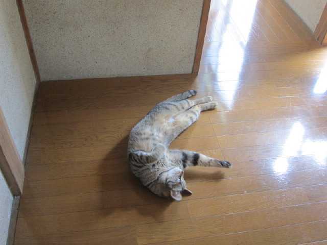 廊下を歩いていたniaが私を見た途端にばたっと行き倒れたそしてこっちをチラッと見るなんなの?何の遊びなの?私はどうすればいいのだ退屈にゃのだ遊んで欲しいにゃんそうか。そういう事だったのか羽根の玩具を振り回したらハッスルして壁をよじ登って追いかけるniaおおぅ猛暑でも君は元気だな元気が一番元気があれば何でも出来るぞ