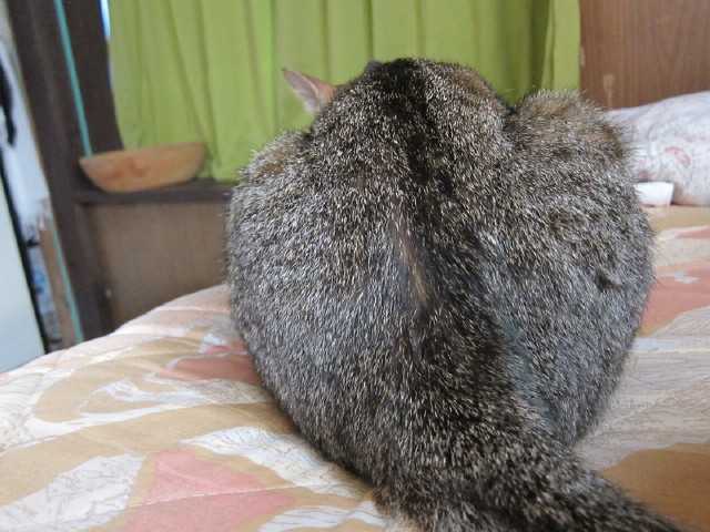 夜になっても2階の私の寝室が蒸し風呂みたいに暑いので1階にあるniaの部屋で寝る事にしました朝、目覚めると目の前にniaのプリけつがwまだ半分寝ているみたいな状態でniaを眺めているとなんだろう不思議な感情が・・・こんもりとした小さな山みたいな逞しいniaに守られているような安心感。と、同時にこの尊い存在をいつか失ってしまう未来への怖さ。朝から少し感傷的になってしまったのは昨夜、猫漫画を読んだせいだ(最後に猫さんは老衰で亡くなってしまった)今日もべらぼうに暑くなりそうです
