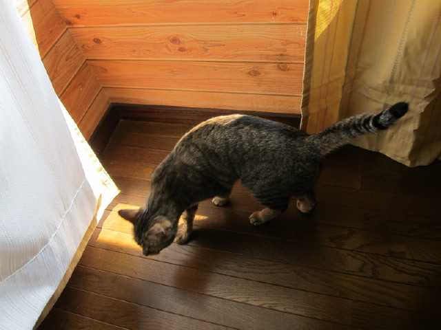 いつも朝から元気全開なのだが今日のniaはなにやら忙しそうだ朝、一緒に起きるとまずは日課の1階の窓からのパトロールそれが終わると朝ごはんのカリカリを少し食べてトイレに行きおしっこするしばらく経ったあとキッチンへ行き冷蔵庫の前で鳴く牛乳が飲みたいようなのでレンジで温めて少しあげる(ほんの5CCほど)私がパソコンへ向かうとおもちゃを持ってやってきたので10分ほど遊ぶ2階へ行きパトロール1階に降りてきて猫草をむしゃむしゃ食べるそして吐くw朝ごはんカリカリの残りを食べるトイレに行ってうんちする今度はお風呂の前で鳴く。シャワーで水を飲んだ後浴槽の中で遊ぶ。肉球がびしょびしよに濡れるがお構いなしだ濡れた毛が気になるのか少し落ち着いたのかソファで毛づくろいを始めるここまでの所要時間1時間15分慌ただしい朝だなと思っていたらniaはソファで寝てしまった(笑)ほんとに君って自由気ままなんだな