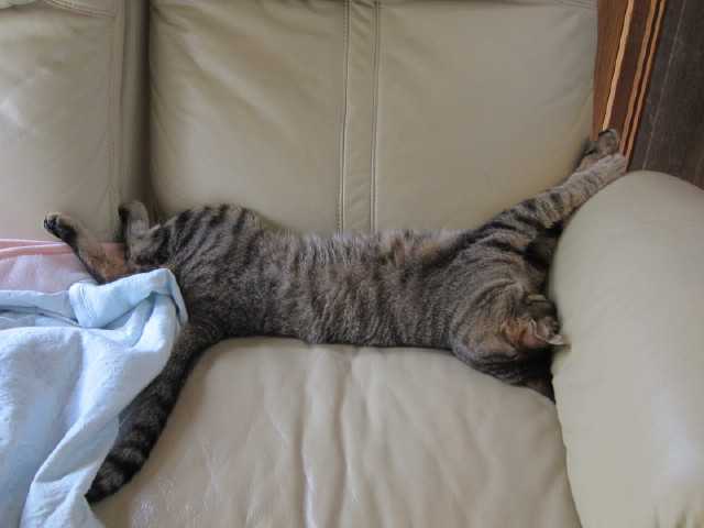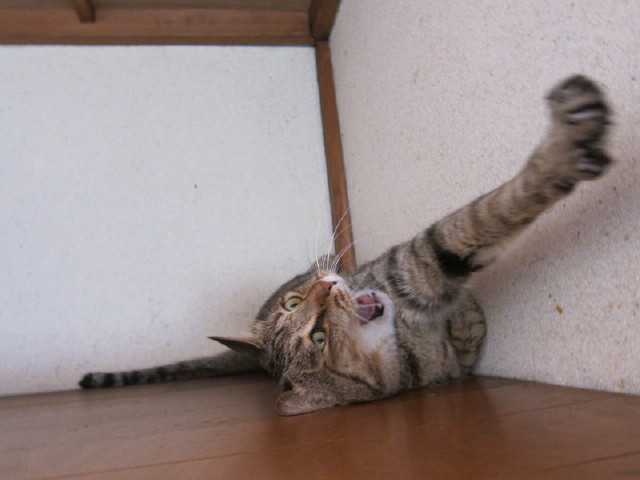 今日も1日冴えない空最高気温26℃と気温が低いのでniaは元気に走りまわりもりもりとご飯を食べおかわりを要求もっとくれにゃーー欲求が満たされたniaは床にごろんと横になりそのまま寝てしまいました起きるとまた遊んでくれー構ってくれー攻撃が始まるのでniaを起こさぬよう私は忍び足でこの場を去りましたwww