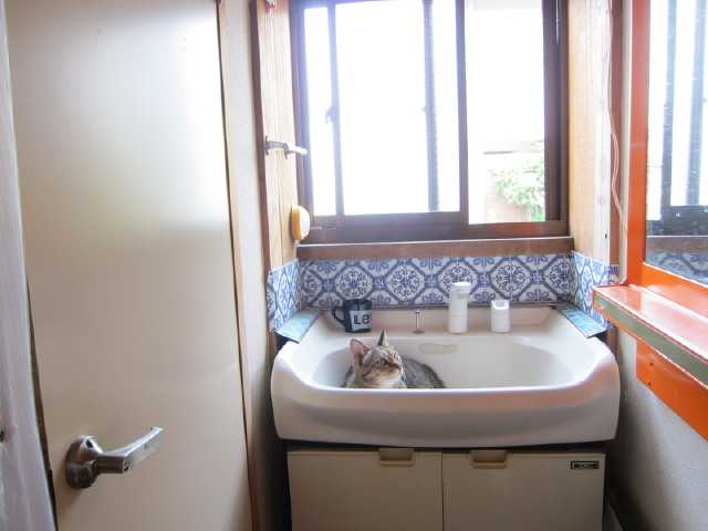 掃除後に洗面所の窓を開けたら涼しい風が‼しばらく開けておいたらniaがいた家の中の色々な場所でくつろいでいるniaですがここで横になっているのは初めて見ましたまたひとつお気に入りの場所が増えましたね※我が家の網戸は全て脱走防止対策済です
