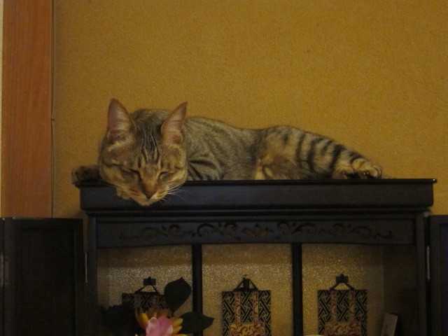 仏壇の上に猫や犬が居ても怒らないでしょう