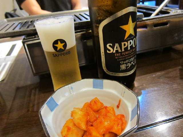 ビールとカクテキで乾杯