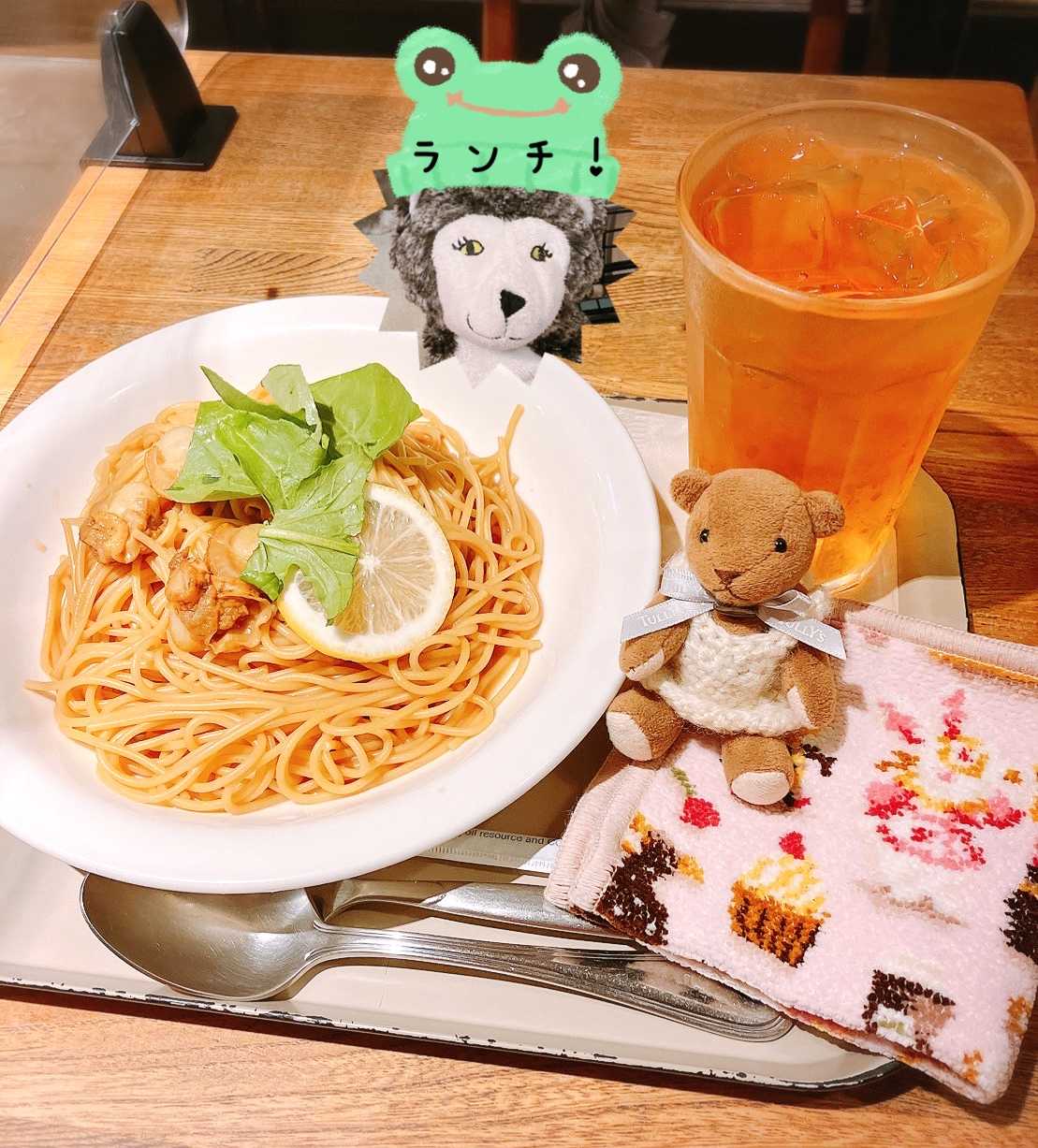8月10日 水曜日9:30 朝食トーストカフェオレ今日はゆっくりな朝ご飯(^^)12:00娘の習い事中にカフェタイム。姉もおそろのフェイラーハンカチ♡縁のピンクがかった赤が可愛い!!!←14:30 ランチパスタアイスティー娘とランチ♡前回とんでもなくもりもり食べてくれたから、娘とわけっこするのに大盛りをオーダーしたら、今回はとんでもなく全く食べない。元々少食のminoはお腹パンパンに。とんでもなく苦しくて、途方に暮れる。姉と姉の娘なら、奪い合いの量だけどね。←そして娘は次の習い事へ。minoは暇すぎてその辺をぶらり。保護者も大変ですな。はっちはどーこだ?19:15 夕食ガパオライスアジアンちっくなスープ今日は出掛けっぱなしで疲れたから、よく水曜にテイクアウトするガパオライスを。ではまた〜
