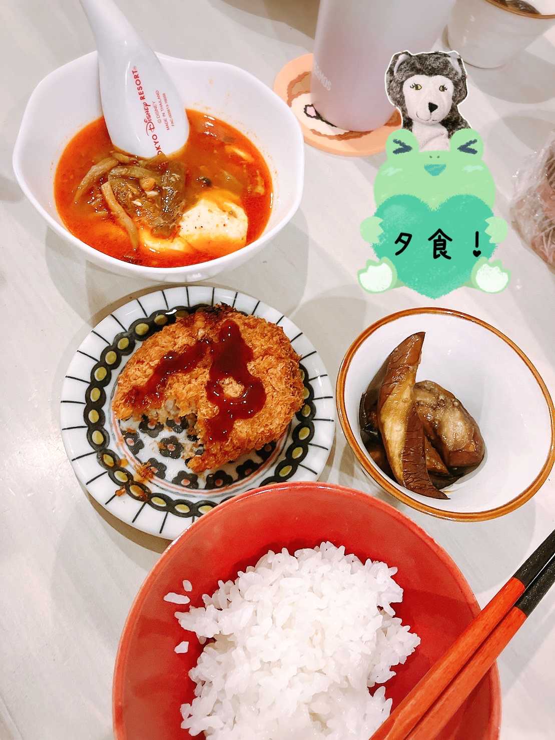8月30日 火曜日ギックリ腰につきまだ死亡中のmino。よって音信不通。姉の問いかけ(LINE)には返答あるが、自らの発信はなし。きっと今日もパン食べたりコーヒー飲んだり、牛丼とかうどんとか食べてたのかな?18:30 夕食メンチカツナスの何か豆腐の辛そうなスープごはん突然写真きた。ちょっと復活したのかな?ちなみに姉宅はアスパラの肉巻きだったが、特に意味はないが、加工で夏仕様にしてみた。暑くて死にそうだった夏だけど。何だかあっという間だったな〜