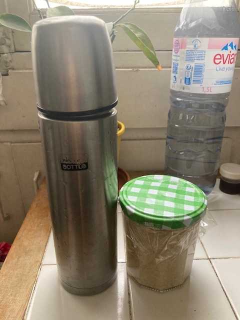 寝る前に温めたポットに麹とお湯を入れて放置していると翌朝には甘酒ができているんですよ!!!