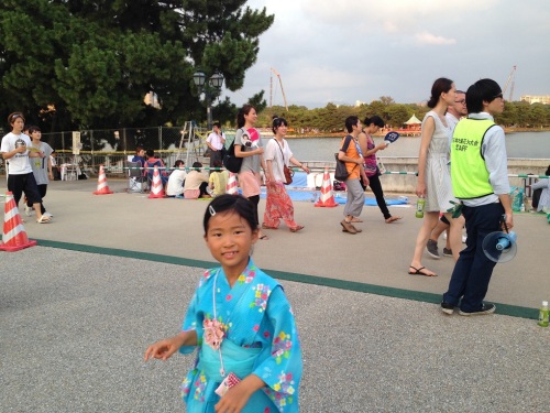 8月1日は毎年恒例の花火大会です。今年も浴衣を着て大濠公園を散策します。花火スタート