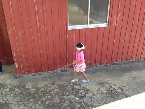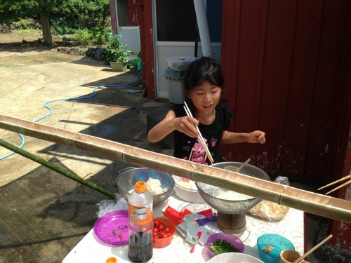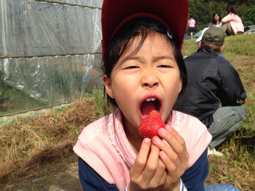 毎年ゴールデンウイークの定番 苺狩りです。 たくさん 食べました!! (#^.^#) そして、後半はこちらも定番「流しソーメン」 流しソーメン の傍らには 変な集団が踊ってました。 なんか ご当地アイドルらしいですが