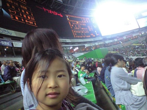 今年もやってきました。年に一度の野球観戦インドーム 去年まで福岡ヤフードームだったのに ヤフオクドーム になってました。 頑張れ〜 内川選手 頑張れ〜 ルールがわからないから ツマラナイ(-_-;) です。 でも、唐揚げとオニギリ美味しい(#^.^#) 寺原投手のホークス復帰初登板だったのに、負けちゃったし、寝る時間になったから早々に引き上げます。 また、来年 !! (*´∀`*)