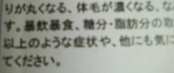先週から飲み始めた薬の副作用に、暴飲暴食に注意! というのがあった。 そういえば。今日ミスタードーナツの差し入れがあり、オモムロに2つも食べて驚かれ、食事もつっかえながらも6~7割食べられるようになり、副作用も逆にいいとこあるじゃん。と思ったのだった。...それよりも。 よく読んでみると。体毛が濃くなる?...別にいいや、もう。どうでも。病気さえ治れば。