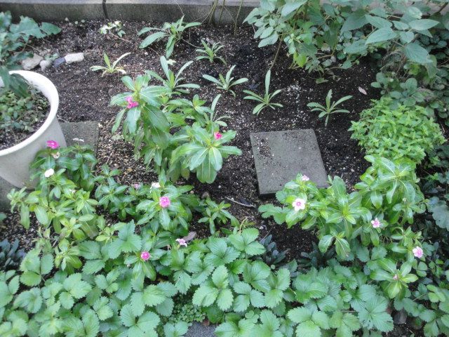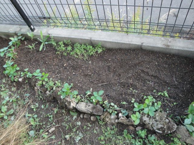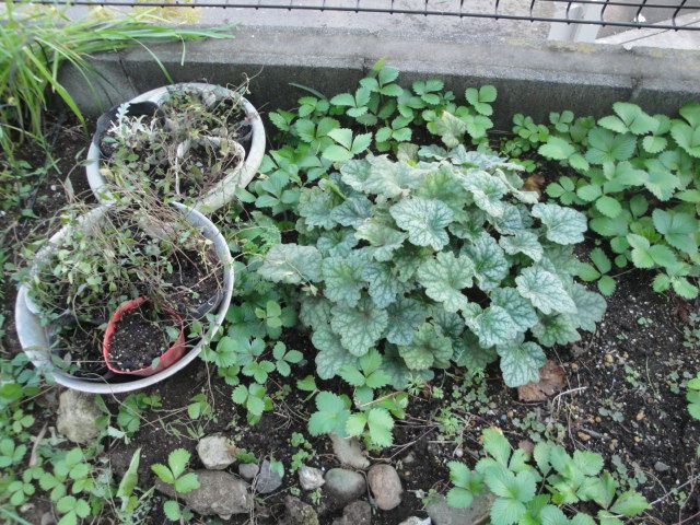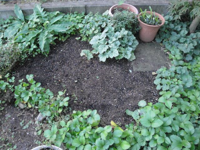 冬の庭は隣の杉のせいで陽当たりが悪い><
