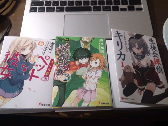 くっそ眠いたまには日付を跨ぐ前に寝たいね土曜日に買ったラノベ3冊とも読み終えました・さくら荘のペットな彼女6展開は読めたのに目頭が熱くなってしまった…この作品本当にタイトルで損してる気がするw中身は青春モノですよ・禁書新3新約に入ってからは今回が一番面白かったペアの組み方とか胸熱伏線多い上に、特典SSとかも多いから本編だけしか読んでないとなかなか厳しい・生徒会探偵キリカ1著者は神様のメモ帳と同じ人テンポが良くてすんなり読めた中身はそこそこかな2巻以降も出るなら買いたい