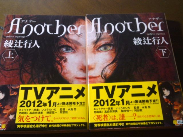 課題とは今日昼間に観たアナザーってアニメの雰囲気が良かったので、原作小説の文庫版を買ってきました今晩、徹夜してでもやらないといけない課題があるので、アナザーをはやく読めるよう頑張りますw