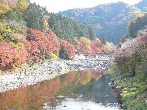 おひさしぶりです!行って来ました紅葉狩り一人旅!!折角のこの時期ってことで紅葉狩り目的のバスツアーに参加してきました一人旅って初めてだったんですが、乗ってみたらご年配の方ばかりで心細く・・・でもなかったんですw隣の席の同じく一人旅の私と同じくらいのお子さんがいる女の人と仲良くなれて(・∀・)一人旅っていう感じではなかったんです。一緒にお菓子食べたり歩いたり浴場で会って裸の付き合いまで(笑一人旅だったからこそ仲良く慣れたんだと思います、本当に良い思い出になりました。一人旅って「独り」旅ではないんですな!ただ自分が映ってる写真は撮れないってだけでw ・*:..。o○☆*゚・*:..。o○☆*゚・*:..。o○☆*゚・*:..。o○☆*゚さてまず最初に向かったのは香嵐渓というところ。川に映る紅葉が美しかった(;´Д`)出店も色々ありました。ちょっと寄ってみたかったんですけど、団子より花優先の私は素通りです(ぁ紅葉の赤と岩の白が眩しい河原。ここでお弁当食べてる人もかなりいました、絶対美味しいだろうなぁ~・・・この辺だと山芋・蕎麦・自家製味噌・こんにゃくとかが目玉商品なのかしら。平日だというのにすごい人です、見ごろはたぶん1週間過ぎくらいかな?今度の3連休は混みそうですね@@ずーっと道なりに歩いていくと何やら山へ登る階段が・・・こういうの見ると登りたくなるのが一人行動時。一番上まで行ってやるぜ~~~!途中で地元のおじいちゃん2人組みと合流、「香嵐渓来たら頂上までいかないと!」と薦められ、バス発の時間制限有のプチ登山に路線変更深い森の中へ・・・w途中にお稲荷さんがあったりもしました。結構な山道でその辺で引き返す人もたくさんいましたが折角なので最後まで登り・・・そこで待っていたのは!!!おじいちゃんたちとの憩いの場、プライスレスさすがに観光客もここまで登ってこないみたいでガラガラでした。地元の人はゆっくりここでくつろぐんですかねぇ私はくつろぐ時間がなかったのですぐさま下山wお店いっぱいあったのに何も食べなかったのは残念だったけど・・・たくさん写真撮れておおむね満足でしたヽ(´ー`)ノそしてこの日はこれでホテルへ。犬山城の近くだったので見に行ったんですが、閉園時間ですた><。日本最古の天守閣があるらしいです・・・さて長くなりましたので2回に分けます!