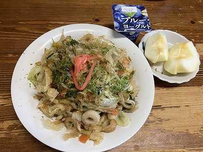 うどん県では、焼うどんではなく、うどん焼きと言います。具は、うどん、豚肉、竹輪、キャベツ、人参、ニラ、もやし味付けは、塩胡椒、だし醤油、ウスターソース、お好み焼きソースりんごヨーグルトポチッとお願いします。 久しぶりの雨です。植えたばかりの玉ねぎとっても他の冬野菜にも恵みの雨家庭菜園も休んで今朝はのんびり。