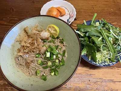 先日、シーズン最後のそばと書きましたが、昼はまだまだ暑いので冷たいそばです。大根おろしと貝割れ大根を乗せた、冷やおろし蕎麦です。わさびと味変のスダチキャベツのコールスローサラダポチッとお願いします。