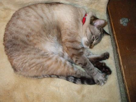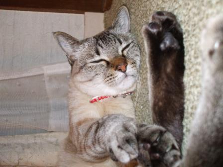 ここ2,3日夜になると、すりすりしたくなるミトキチです!時節がら「燃える」ものがある様子、ママは顔をなめられて、眠れない様子何故か私のところには来ません、どうしてでしょうか?朝になると起きていられません!即効熟睡のミトキチです。昼間は寝て夜は元気、このパターンが暫く続きそうです。
