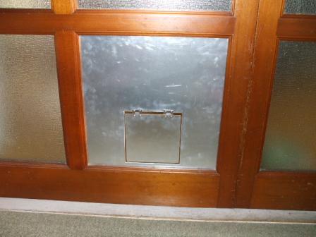 いよいよ寒い季節になって来ました、皆様お元気でしょうか?また一か月さぼってしまったみときちです。さて寒くなると必然的に部屋の扉を閉めますが、不便な方が約1名!どこかの「投稿ビデオ」に登場するような芸があればいいのだけれど凡人もとい凡猫にこの方、トイレと言えば扉の前で「にゃ~!」ご飯と言えばまた「にゃ~!」出て行ったかと思うと寒いので、速攻で用事を済ませてまた「にゃ~!」しかし今年からは新兵器!自動!?ドア?完成しました。D2へ行ってアルミの板を買ってきて、ちょうど割れ目がはいってしまった引戸のガラスと交換!・・・え~!こんなの使えるの?と言う疑問のこえにお答えして、本日の主役「ミトキチ」さんの登場です!最初は板に写る自分の姿にびびって、しりごみしてましたが、ようやく慣れてまいりました!今年の冬はミトキチの「ドア係」しなくて済みそうです!