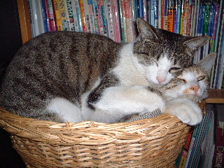 最高気温が6度でした寒かったです買い物へ出掛けて、途中からみぞれが降ってきてびっくりでしたモモは朝早く起きて、外に出たがってましたが結局、寒くて出ませんでした早く起こされたので、又モモと寝ました2002.3.24トト、面白い恰好です2002.3.27モモとミーこの頃も、仲良しでした2002.3.142匹は、お布団に入ってました朝早く起きて、2度寝してました白目が、恐いですモモを上から撮ってみました椅子1個分、どかっと使ってます随分大きく育ったものです