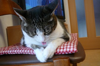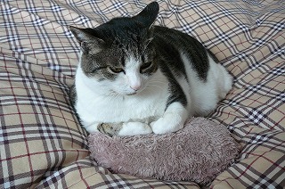 今日の最高気温は15度曇ってましたが、風も無く暖かかったです明日は更に気温が高く19度だそうですしかし雨マークで、又雨でしょうか今日は午後から、上の孫とモクモクファームへ豚さんに会いに行きましたデジカメを持たずに行きました朝早く散歩に出て、帰って来てから眠そうですこのクッション、くぼみが出来て座り易そうです散歩の2度目は、私と行きました「ミーちゃんおはよう」って言っているのでしょうか帰って来て、又寝るようですお尻しか、写ってませんね晩御飯の時、乗って来て食べ難いです明日は雨の様なので、2回散歩行って良かったです