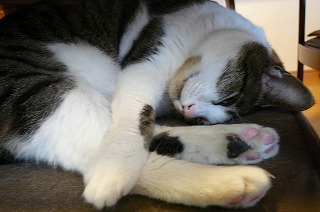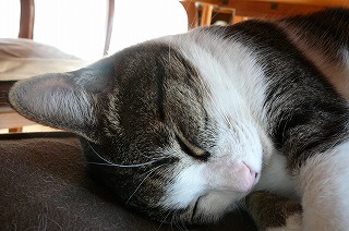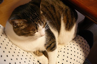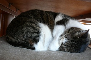 今日は曇りで気温が上がらず、かなり寒いです予報は10度でしたが、5度位しかありません午後は、とうとうみぞれが降りました昨日に外の掃除を終えていて、良かったです朝、早々膝に乗って来ました余程、寒かったようですお布団にも、入って寝てました眠いようですよく寝た後は、ブログチェックをしっかりとね今は、ソファで爆睡中明日は雪マーク寒いお正月になりそうです先日アップしました「葉牡丹」は、23苗使ってありました度々、すみませんでした