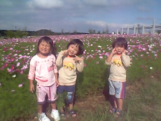 今日はいつも行ってるホームセンター近くにショッピングセンターがさらにオープン(近いうちにスパ、アウトレットもオープン予定)こんな混んでるときに行かなくてもな~と思うパパだったが、昼ごはん目当てに行ってみたイ○ローハットで風船とポップコーンもらったミツゴンジャーそのあとスーパーとか、フードコート行ったりするのだが、ミツゴンジャーはフラフラ歩き、まとまりがないものだからその間に風船が絡まり、収拾がつかないことに・・・・絡まったまんまクルマに持ち帰った( ̄∇ ̄;帰りは公園でコスモスを見る満開のコスモス畑を見るのも何年振りだろう・・・?たぶん、ミツゴンジャーもはじめてだと思うところで、ショッピングセンターの中に「31」があり、店のお姉さんがアイスをスプーンで一口分試食させていたプラスチックのスプーンごとアイスをもらうのが普通ですねしかし、ミツゴンジャーはお姉さんにむかって・・・(^Q^)(^Q^)(^Q^)あ~ん♪そりゃ、厚かましいってもんだろ・・・(-_-;)